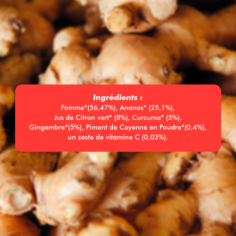 Chez Yumi, on ne vous vend pas de l’eau déguisée en shot. Ici, chaque goutte compte : un concentré de fruits et épices 100 % bio, rien de plus, rien de moins. Parce qu’on préfère vous booster avec du vrai, pas vous noyer dans du banal.